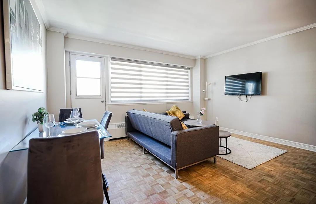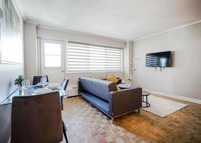 Situated around a 25-minute stroll from the Mount Royal Park, Downtown Montreal 2-Bedroom Gem Near Bell Centre apartment also boasts easy access to Central Montreal train station which is only 1.5 km away.